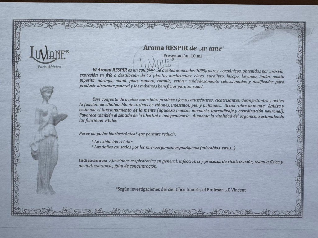 -inhale directamente o con un pañuelo o con un difusor eléctrico o sobre la almohada.