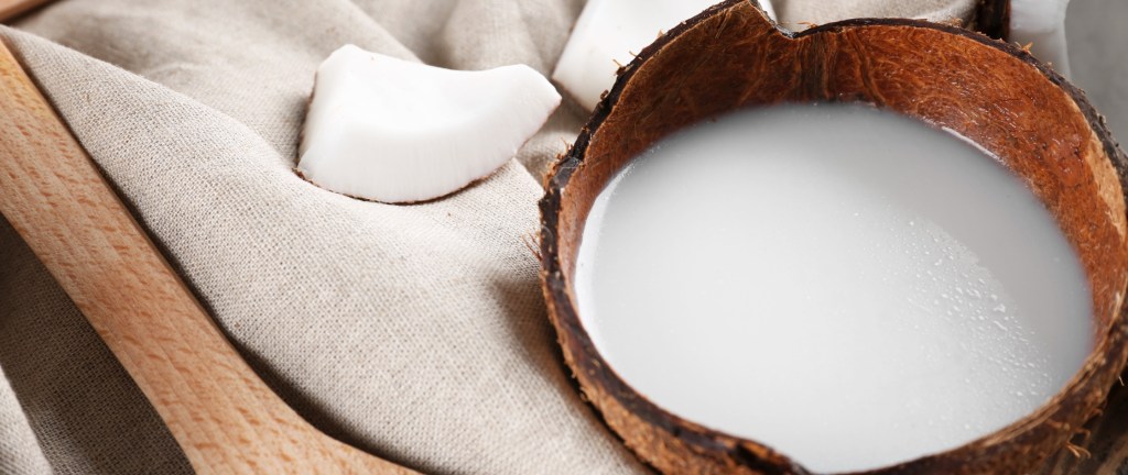 Licuar 125 ml de agua de coco y 250 ml de agua de manantial baja en sales minerales. Dejar una hora en refrigerador, colar y servir.